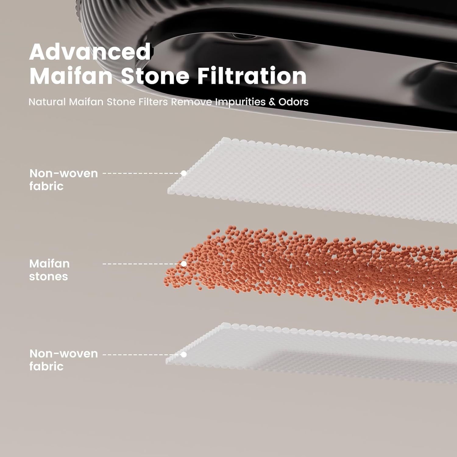- 3-Layer Maifan Stone Filtration & UV โ Non-woven fabric + natural maifan stone + non-woven fabric trap hair, dust, and impurities. and the Water Pump Built-in UV to keep the water hygienic. Includes 2 replacement filters(and thanks so much for our dear customer message. our filter products will be available for sale in as soon as two months).