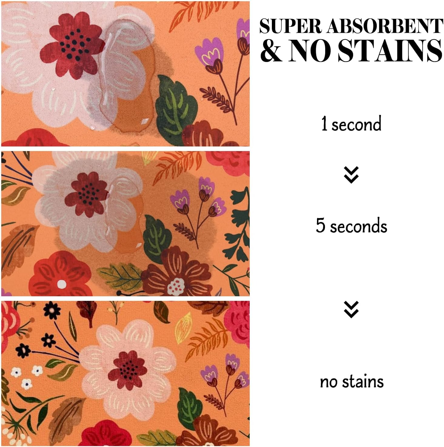 - Super Absorption: The dog mat for water bowl can absorb spilled water without leaving traces and dry quick, avoid wetting pet paws even for messy drinkers. And it does not attract pet hair like traditional silicone dog bowl mat.