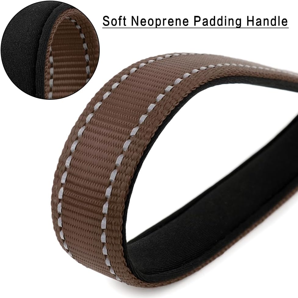 PLUTUS PET Short Dog Leash, Reflective Nylon Padded Handle, Strong Traffic Leash with Carabiner Clip, Perfect for Large or Medium Dogs (10”,Chocolate)