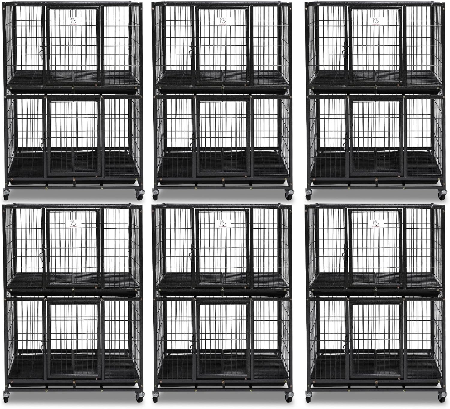 Homey Pet Six Packs 31 Inch Stackable Heavy Duty Dog Crate Cage Kennel with Four Lockable Wheels, Removable Tray, Escape Proof Wire Drop Dog Crates for Small Dogs (Two Tiers)