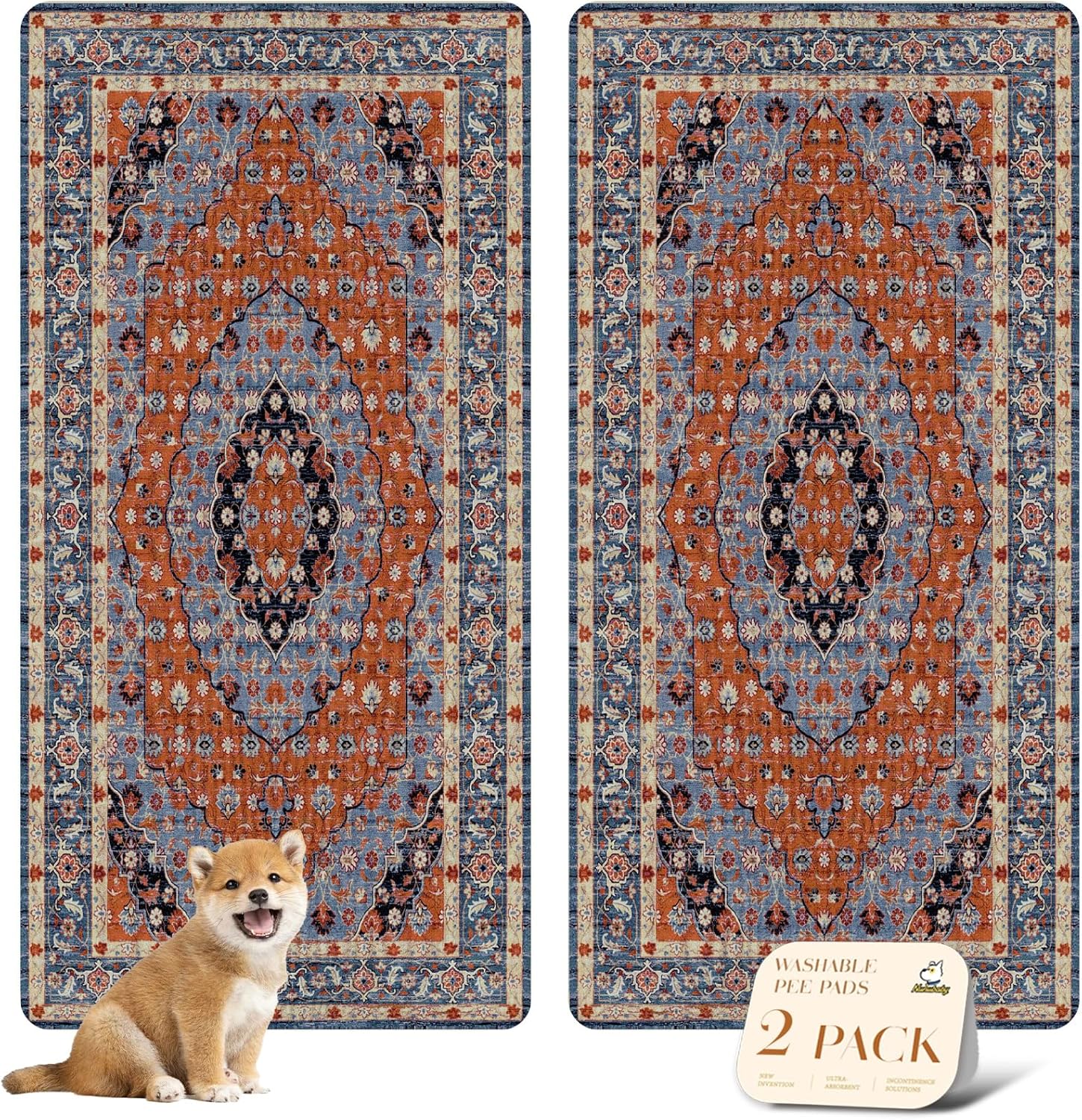 nunubaby Washable Pee Pads for Dogs, Stylish, Non-Slip and Leak-Proof Pee Pads. Reusable Potty Pads for Dogs for Crates and Floors.(Red/Floral, 36" x72")