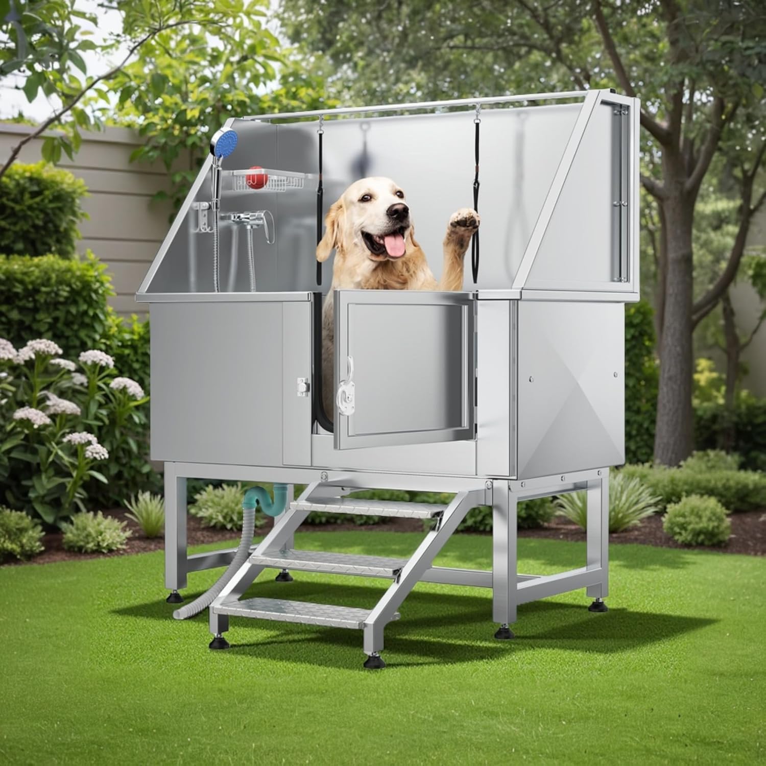 YITAHOME Professional Dog Bathtub 50in, Stainless Steel 304 Pet Grooming Station with Right Door & Floor Grate, Ideal for Large to Small Pets, Indoor & Outdoor Use