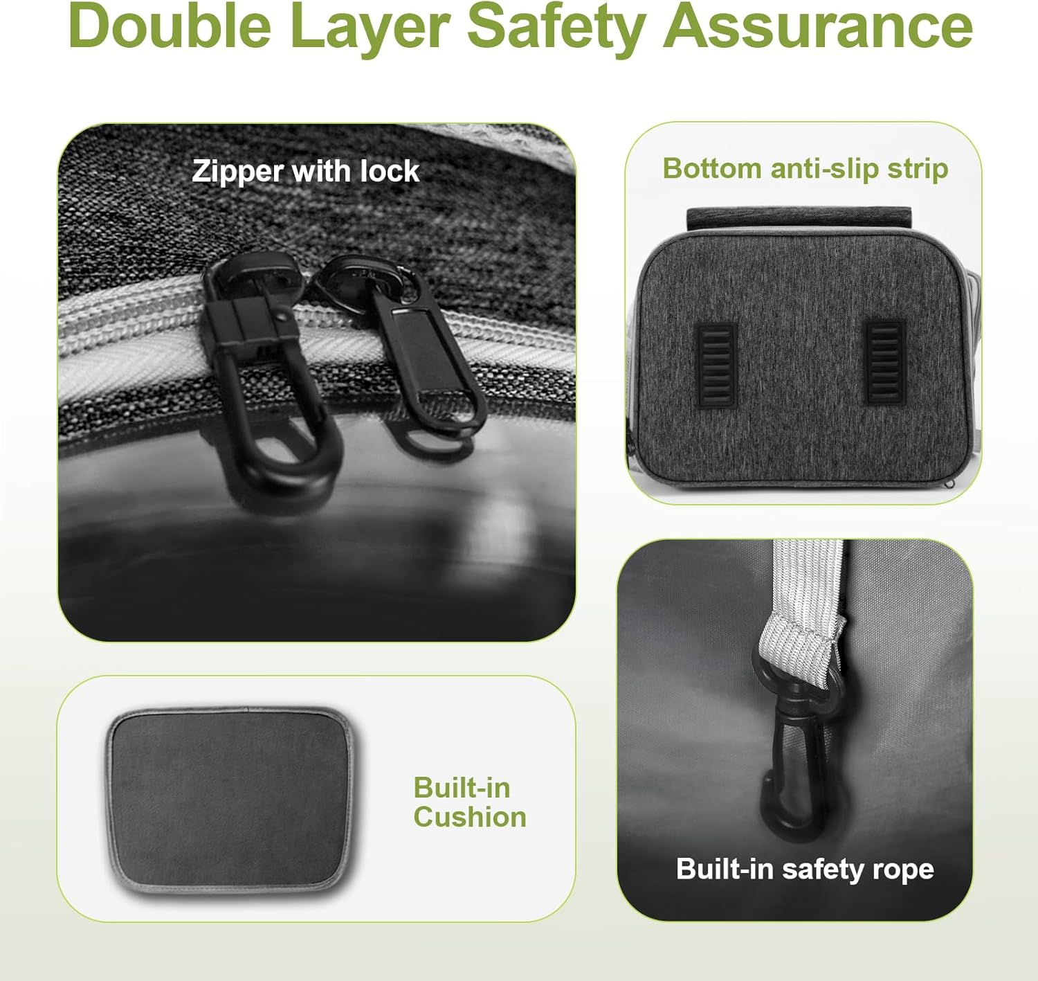 - Secure and Convenient Features: Designed with your pet's safety in mind, our cat backpack is equipped with a variety of secure and convenient features. The shoulder strap comes with a chest buckle, keeping the backpack stable and preventing shoulder strain. The zipper is designed with a lock, providing extra security during travel. Additionally, the built-in anti-escape safety leash ensures that your pets stay securely inside the backpack at all times.