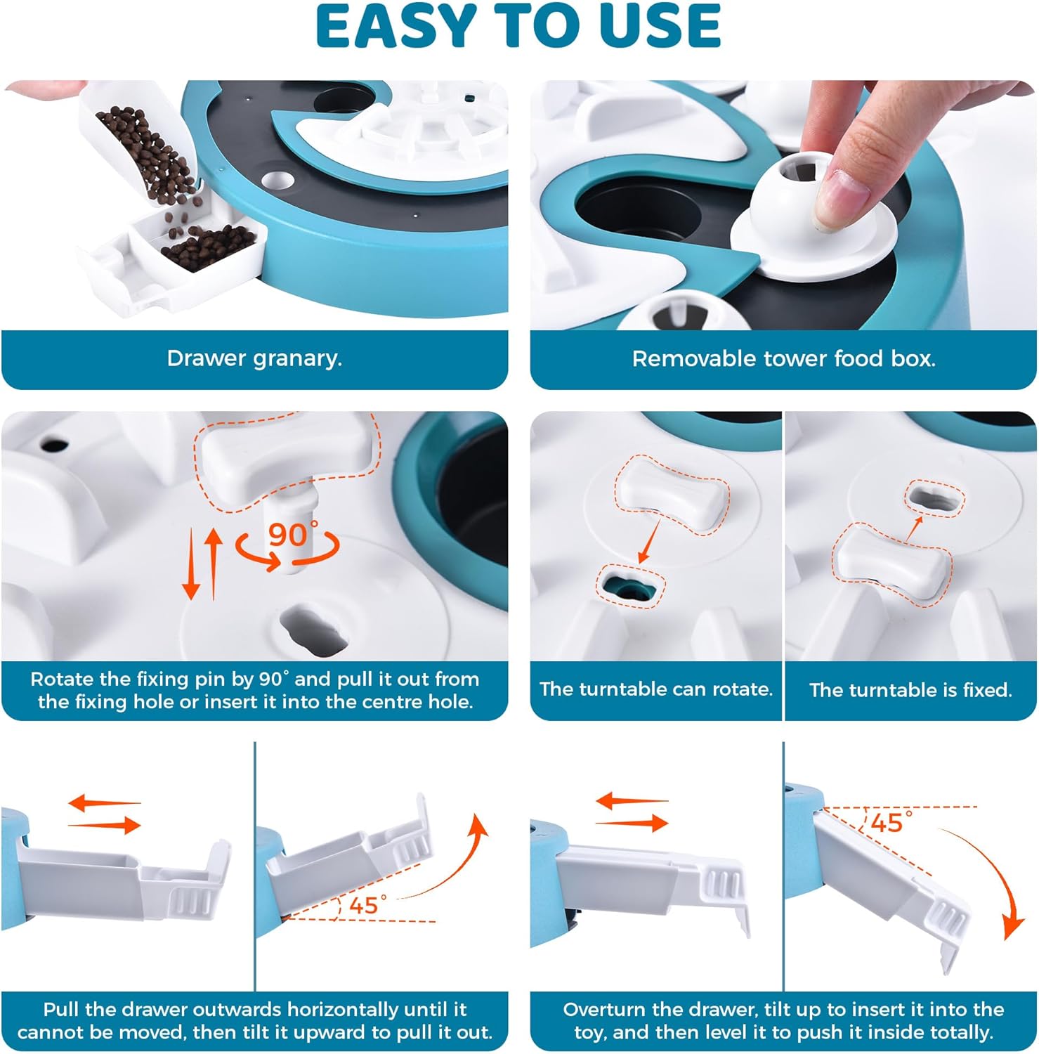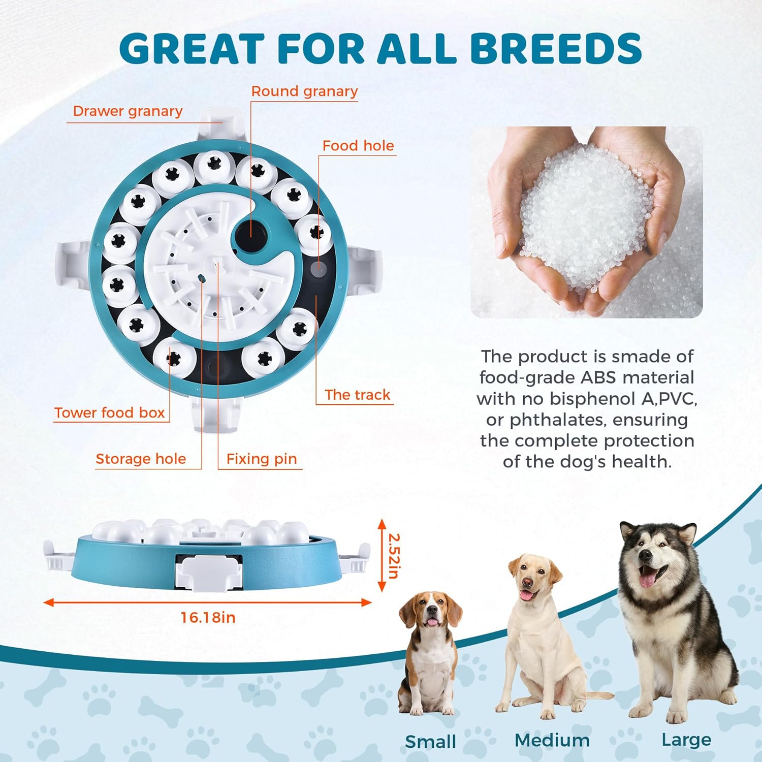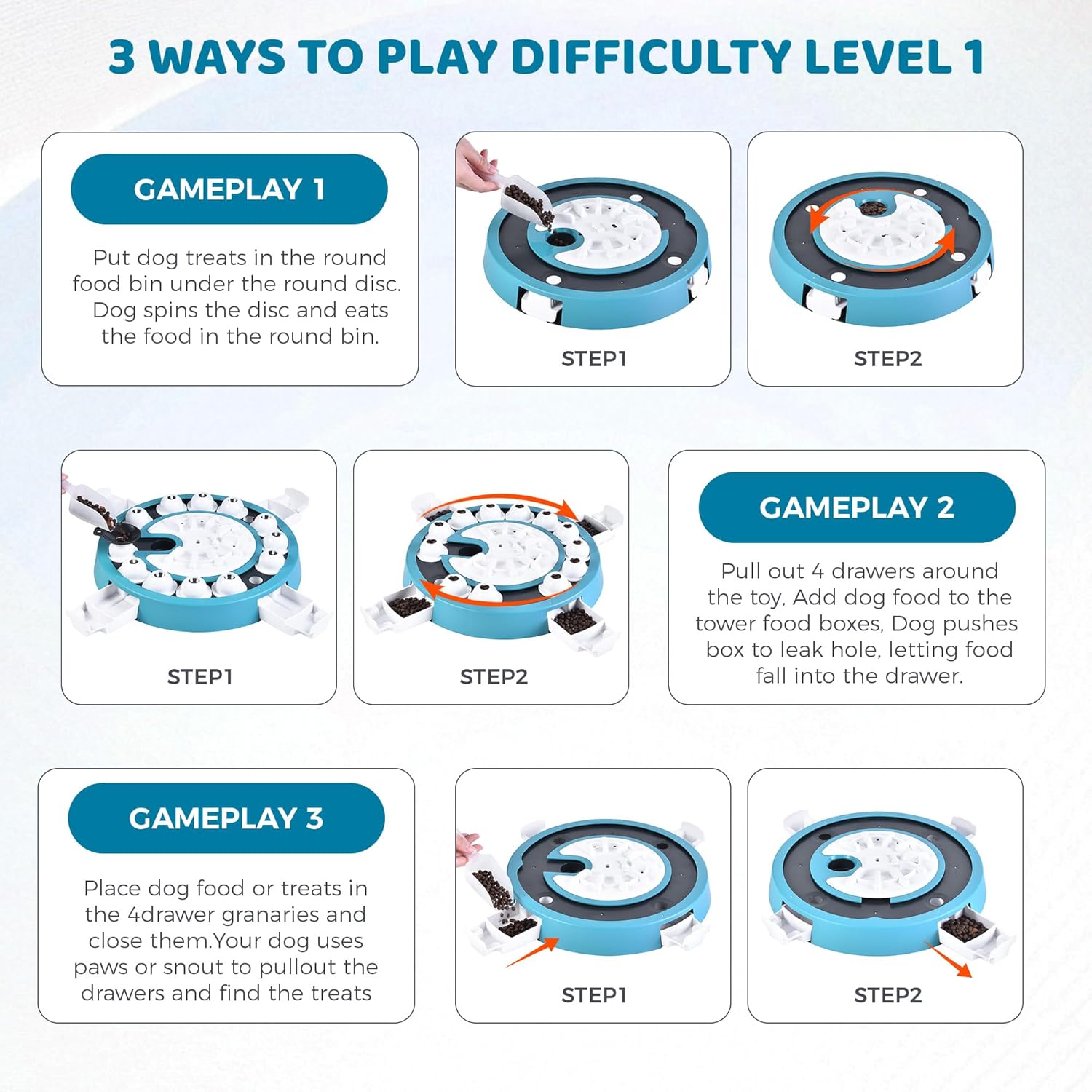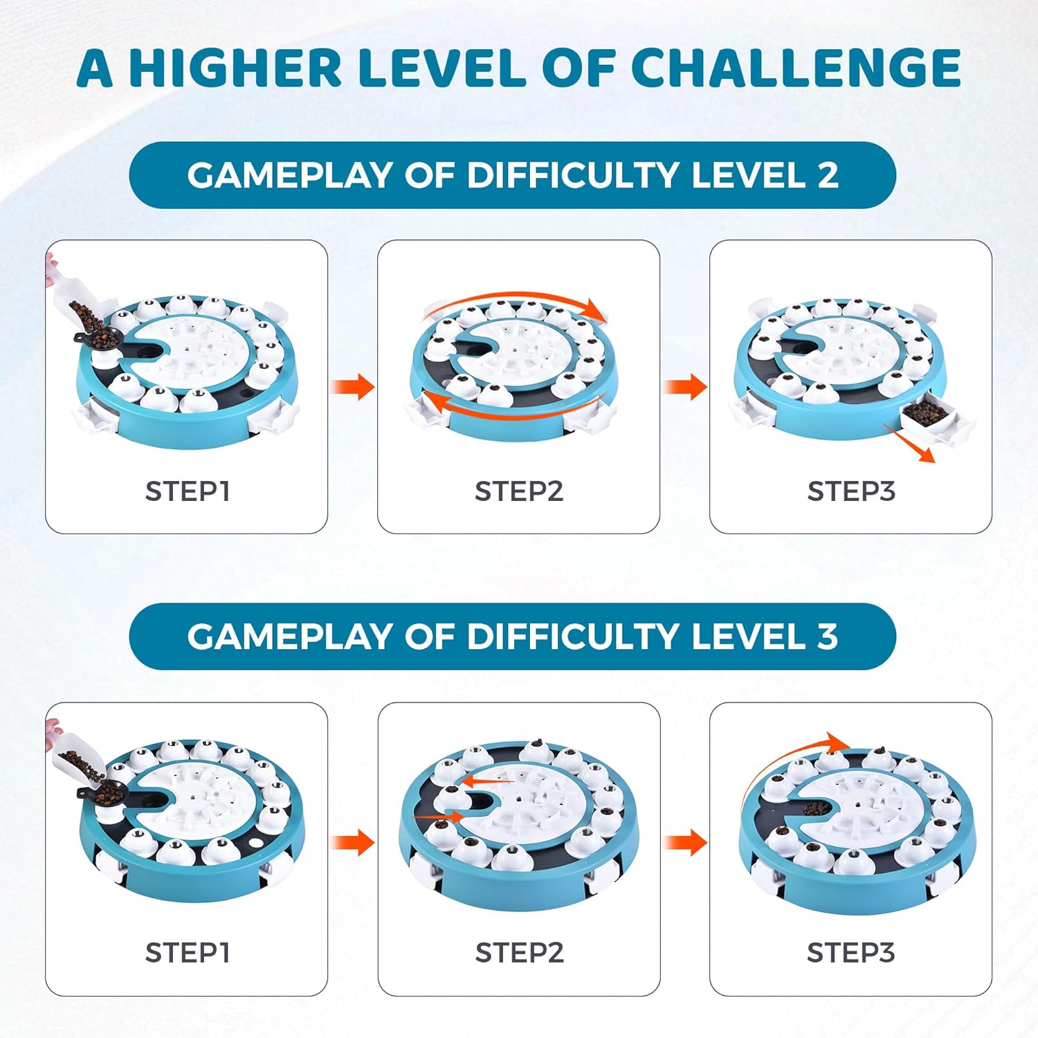- Adjustable Challenges Levels - This puzzle toy can support multiple levels, from very easy to difficult, so you donโt have to buy multiple puzzle toys. This puzzle can alongside your dog's understanding, gradually increasing the challenge.