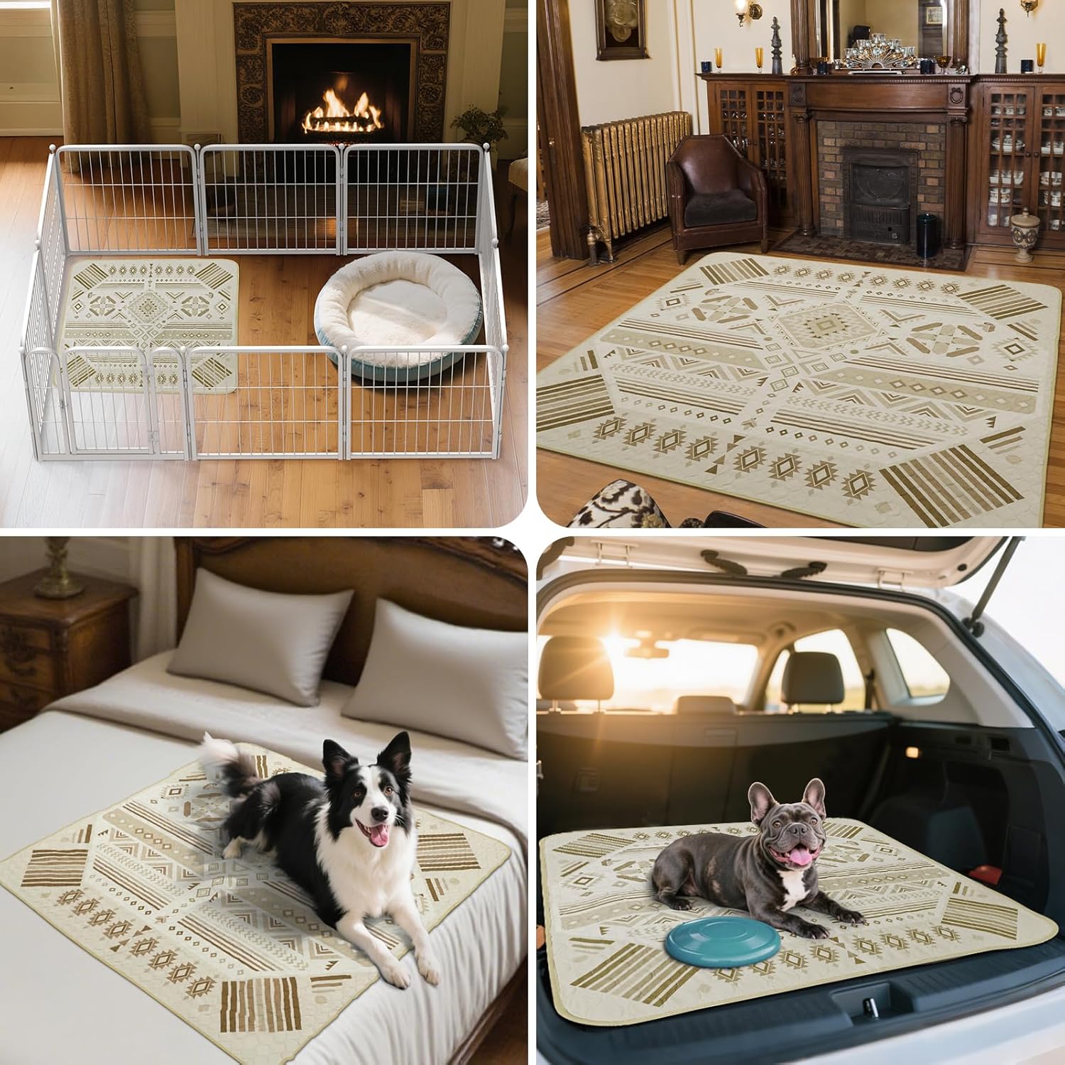 FXW Washable Pee Pads for Dogs, Puppy Pads with Super Absorbent, Specifically Designed for Potty Training, 35" Square, Khaki Geometric, 2 Packs