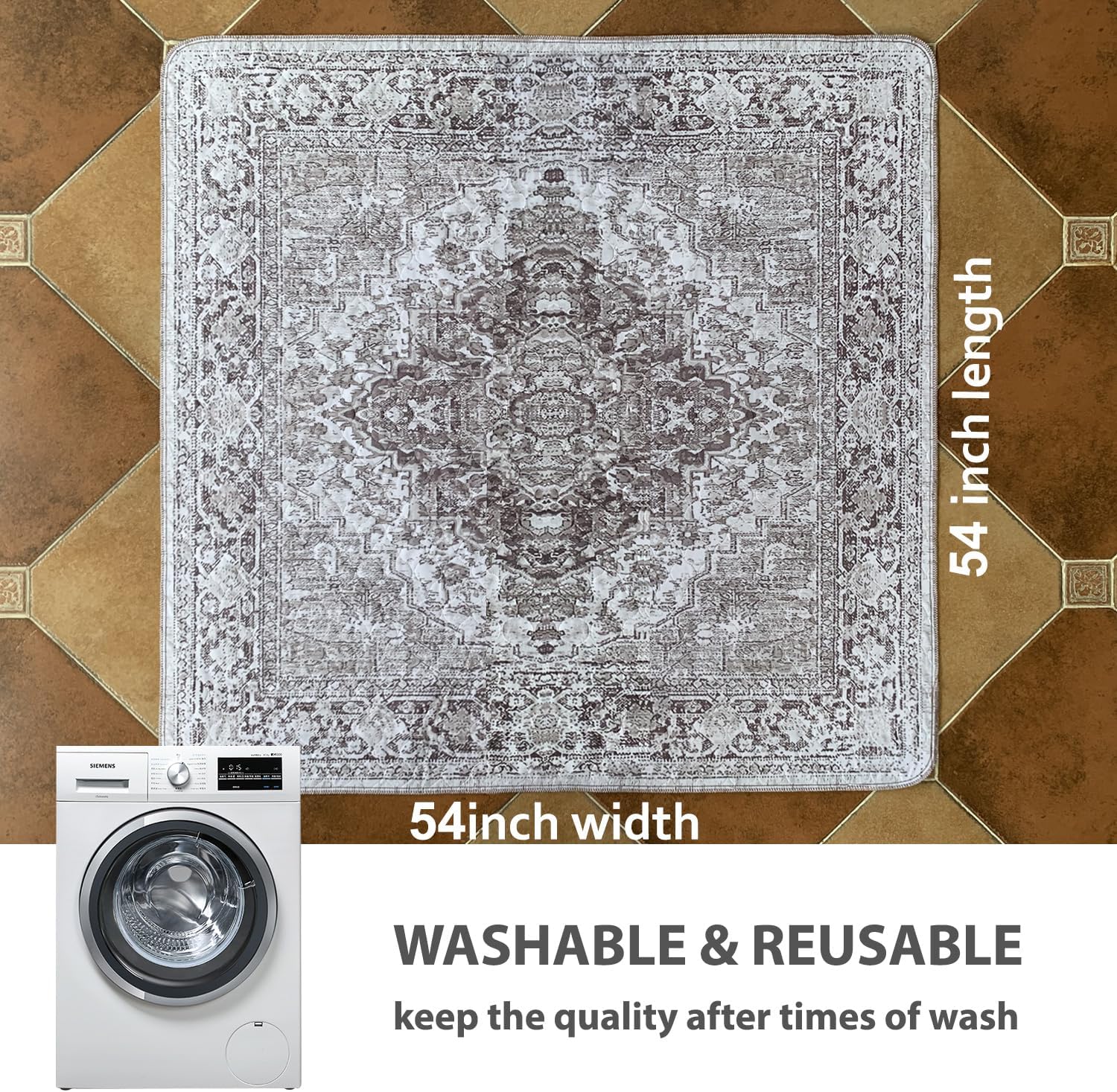 nunubaby Washable Pee Pads for Dogs, Stylish, Non-Slip and Leak-Proof Pee Pads. Reusable Potty Pads for Dogs for Crates and Floors.(Brown/Geo, 54" x54")