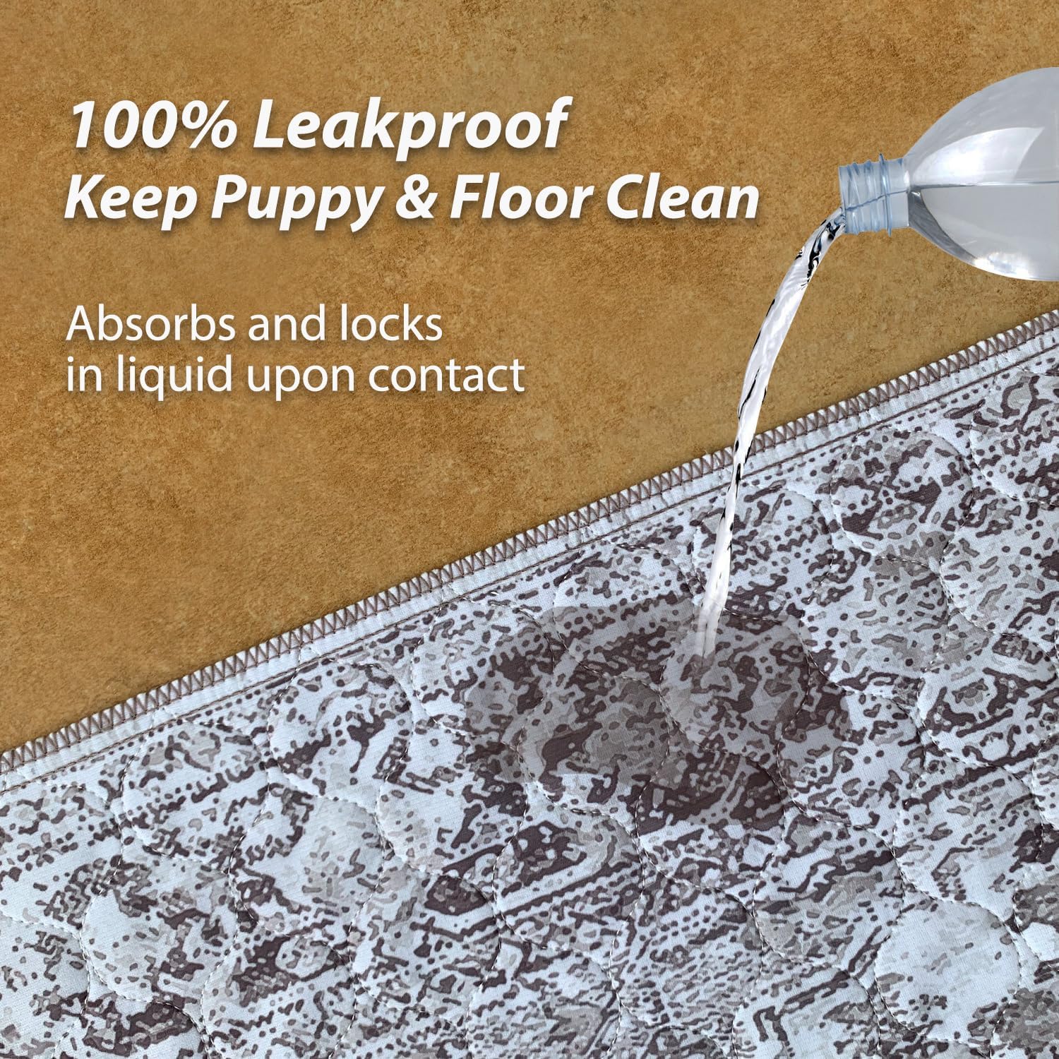 nunubaby Washable Pee Pads for Dogs, Stylish, Non-Slip and Leak-Proof Pee Pads. Reusable Potty Pads for Dogs for Crates and Floors.(Brown/Geo, 48" x48")