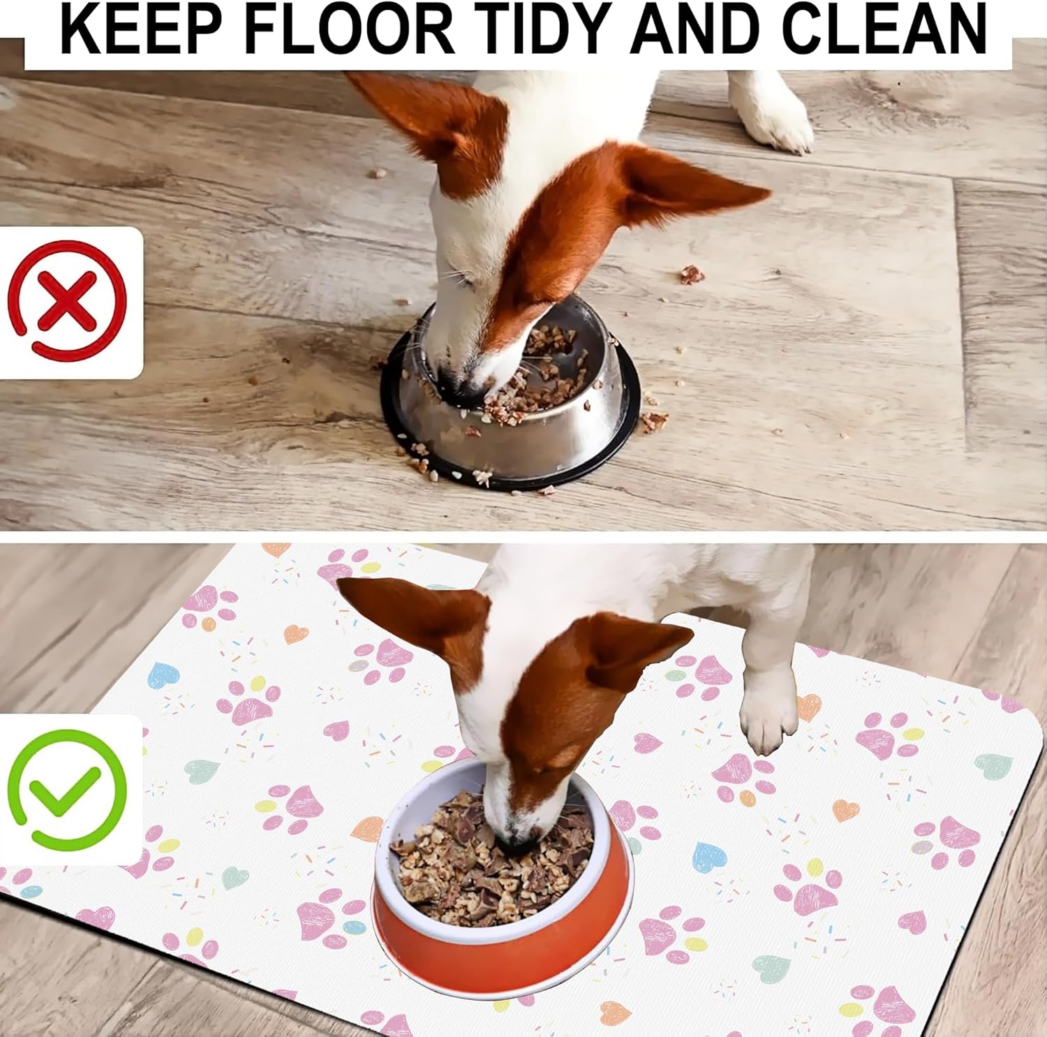 Pink Dog Paw Pet Feeding Mat for Floors-Absorbent Dog Bowl Mat for Food and Water, Quick Dry Pet Cat Feeding Mats with Non Slip Bottom, Mess-Free Dog Accessories 12"x20"