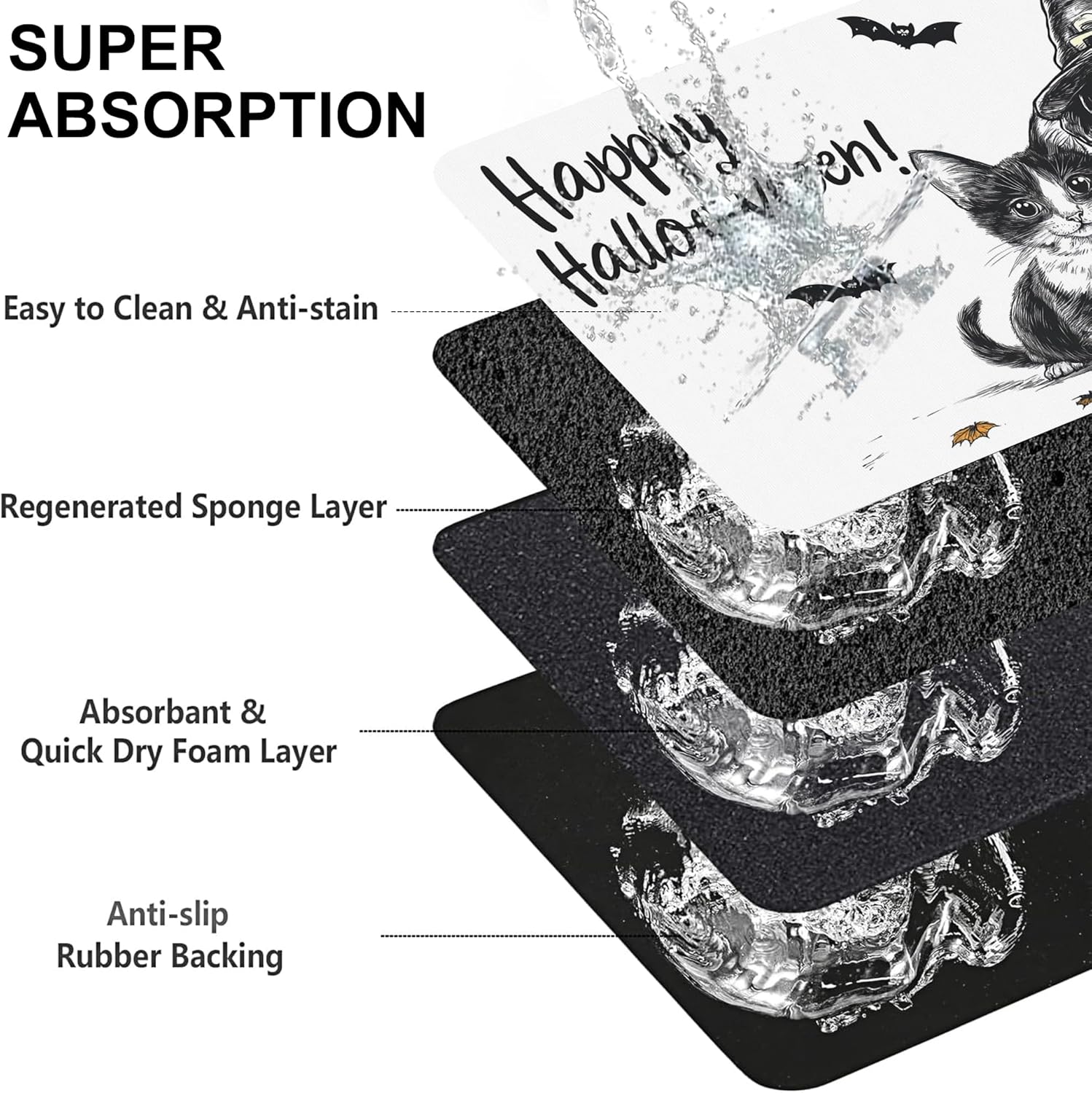 Halloween Cat Dachshund Dog Cat Food Mat-Absorbent Placemat for Food and Water Bowl, Waterproof Non Slip Rubber Backing Dog Food Mats for Floors, Pet Supplies 16 * 24 inch