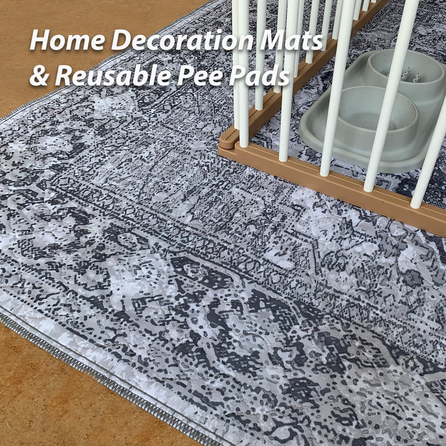 nunubaby Washable Pee Pads for Dogs, Stylish, Non-Slip and Leak-Proof Pee Pads. Reusable Potty Pads for Dogs for Crates and Floors.(Grey/Geo, 48" x48")