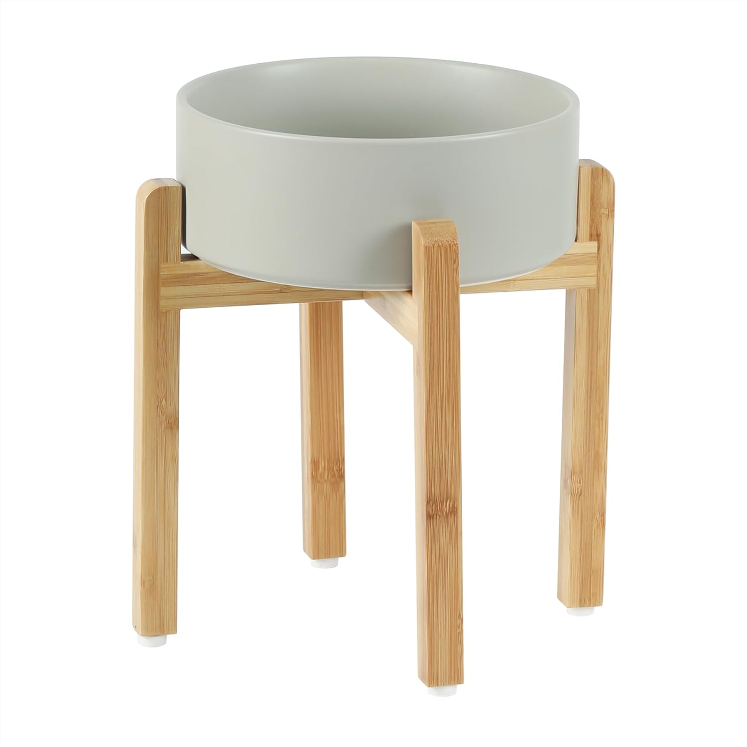 Ceramic 8.2inch Raised Dog Bowl Set, Elevated Feeder with Stand, Food and Water Bowl for Large Breed Dogs, Weighted Pet Dish(60oz, Grey)