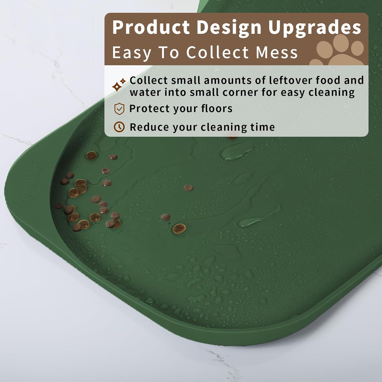 - Widely Used - The anti slip dog food spill mat with high sides can also be used under pet water fountain, automatic feeder, and litter boxes to help contain messes and protect floors. Use as boot mat, shoe matt tray for entryway, pet water splash mat, dog water bowl drip pan. Can also be used for dog crate, trash can, pet water dispenser, countertop, plant, fish tank.