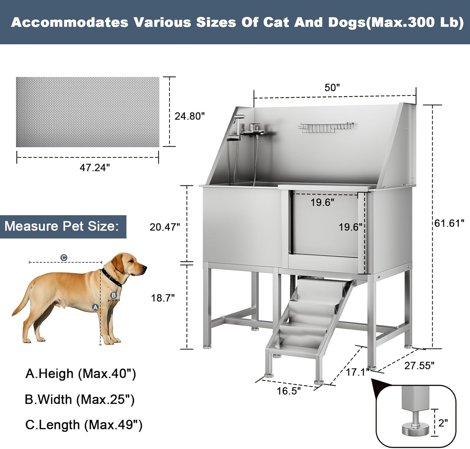 CuisinSmart 50" Dog Bathtub for Large Dogs, Professional Dog Washing Station with Dog Wash Attachment, Bath Pool for Outdoor, Indoor Shower and Grooming (50" Right Door)