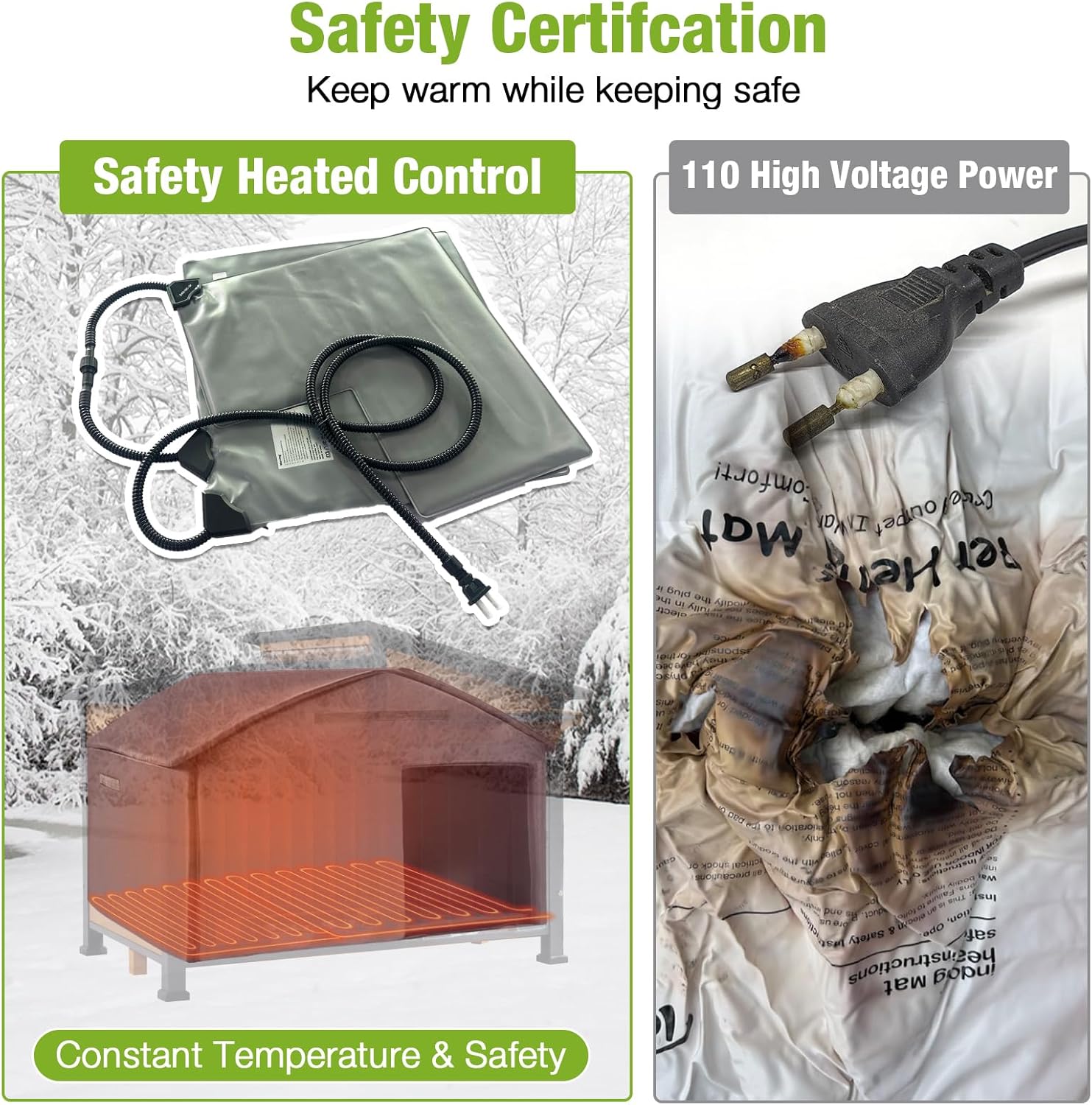 - Safe Heating Pad System: Comes with an automatic thermostat heater that maintains 85–115°F. Built-in overheat protection and a chew-resistant cord mean safe, worry-free warmth