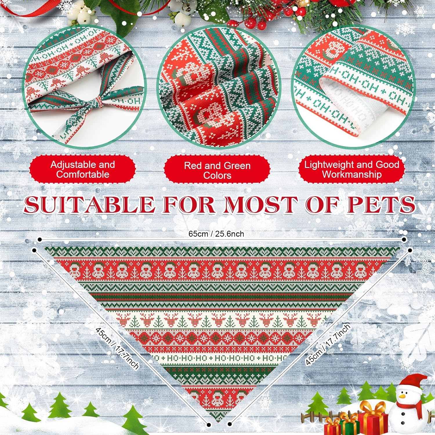 - Size Information: these Christmas Ugly Sweater Dog Bandanas bulk are approx. 25.6 x 17.7 x 17.7 inches/ 65 x 45 x 45 cm, the size are suitable for most size dogs, can be folded and adjusted, please confirm the size information before purchasing